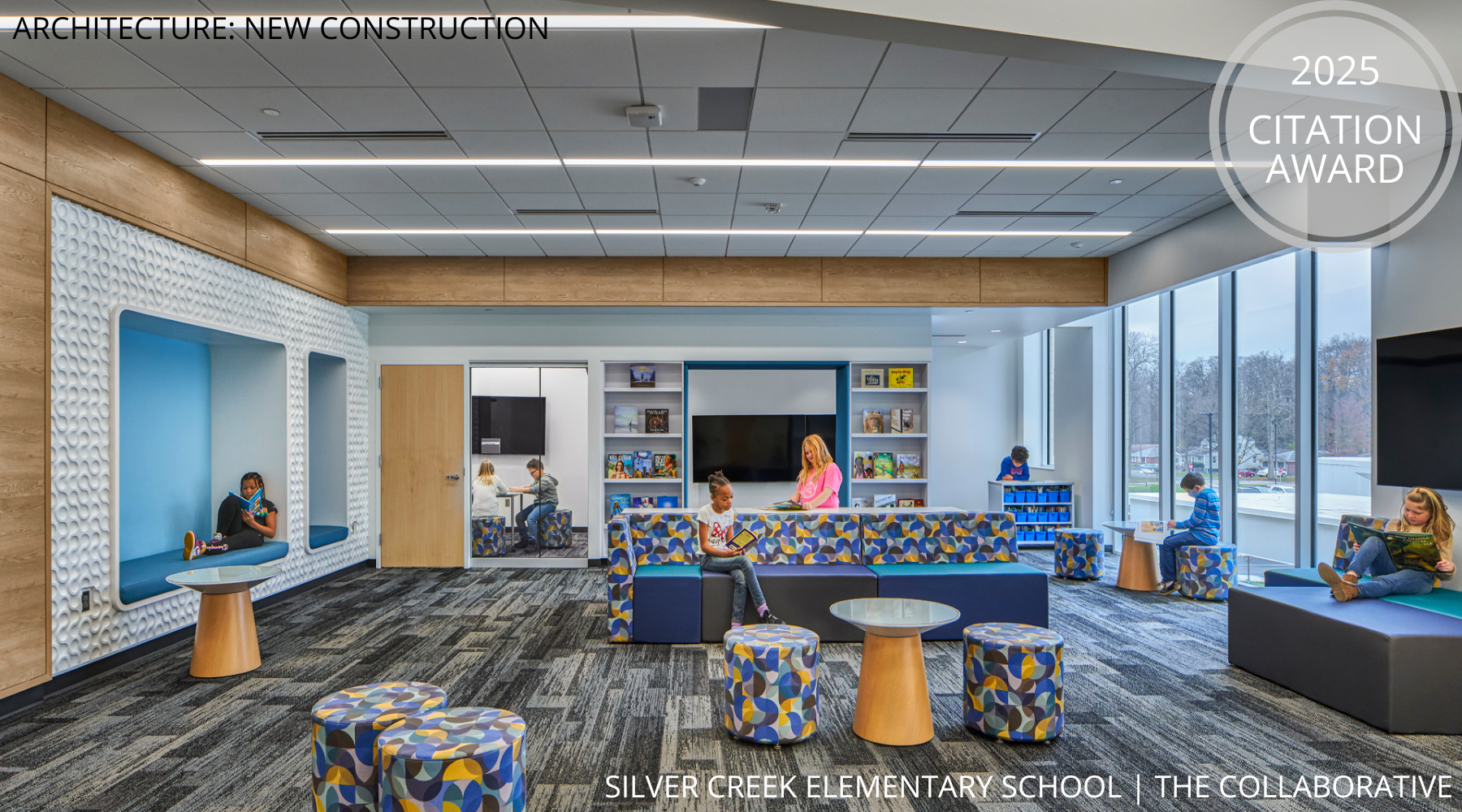 Silver Creek supports roughly 700 K-5 students (and short-term accommodations for grade 6) organized into a series of grade-specific neighborhood pods that serve as micro-communities within the larger school. These pods are anchored by generous extended learning areas designed to support a variety of teaching modalities, from direct instruction to project-based learning and student-led collaboration. The spatial hierarchy reinforces a sense of scale and belonging, making the building feel both expansive and intimate.